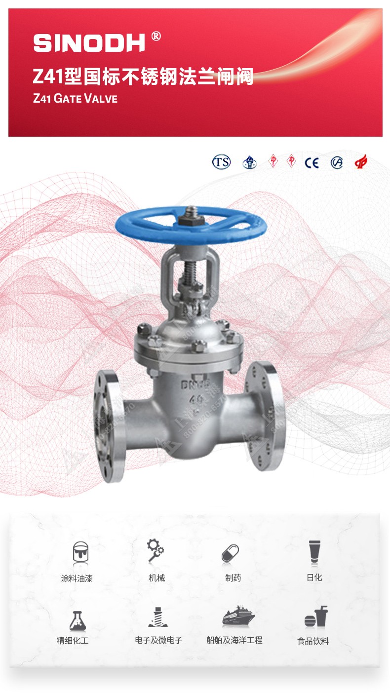 Z41型不锈钢闸阀,为三亿官方网站_三亿(中国)自主研发生产。本产品是一种最常见的启闭阀,利用闸板的上下工作来接通(全开)和截断(全关)管道中的流体介质。此类闸阀广泛用于自来水、污水、建筑、石油、化工、食品、医药、轻纺、电力、船舶、冶金、能源系统等体管线上作为调节和截流装置使用。