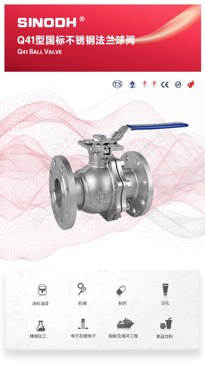 Q41型国标不锈钢法兰球阀,为三亿官方网站_三亿(中国)自主研发生产。本产品设计制造标准符合GB/T12237、GB/T 1 2224标准该产品的球体在介质压力作用下,球体能产生-定的位移并紧压在出口端的密封面上,保证出口端密封。适用于水、溶剂、酸和天然气等-般工业介质,也适用于工况恶劣的介质,如氧气、过氧化氢、甲烷和乙烯等介质。